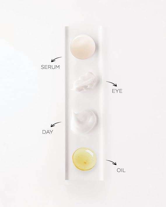 Cut open the active dose vial with small scissors and squeeze the product into your palm. Step 1: Serum. Step 2: Eye Cream. Step 3: Moisturizer. Step 4: Body Oil. If using in the morning, apply sunscreen afterwards.