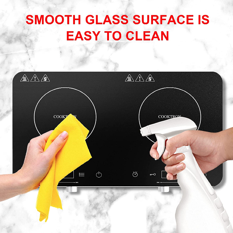 • ?????-???????????/????? ????????: 10 temperature levels 2 burner induction cooktop(adjustable temperature range is 140 °F to 464 °F), 9 power levels, quickly choose your desired power from 200W to 1800W in 200W increments. Sensitive touch buttons ensure convenience to use, set the time of your induction cooker ranging from 1 minute to 4 hours to ensure fine cooking and result.