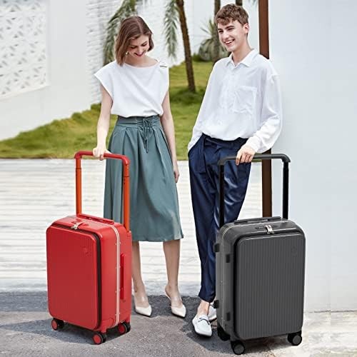 Mixi Carry On Luggage 20'' Suitcase with Front Laptop Pocket, Wide Handle Rolling Travel Suitcases PC Hardshell with Aluminum Frame Spinner Wheels & TSA Lock, Carry-On Luggage(Red)