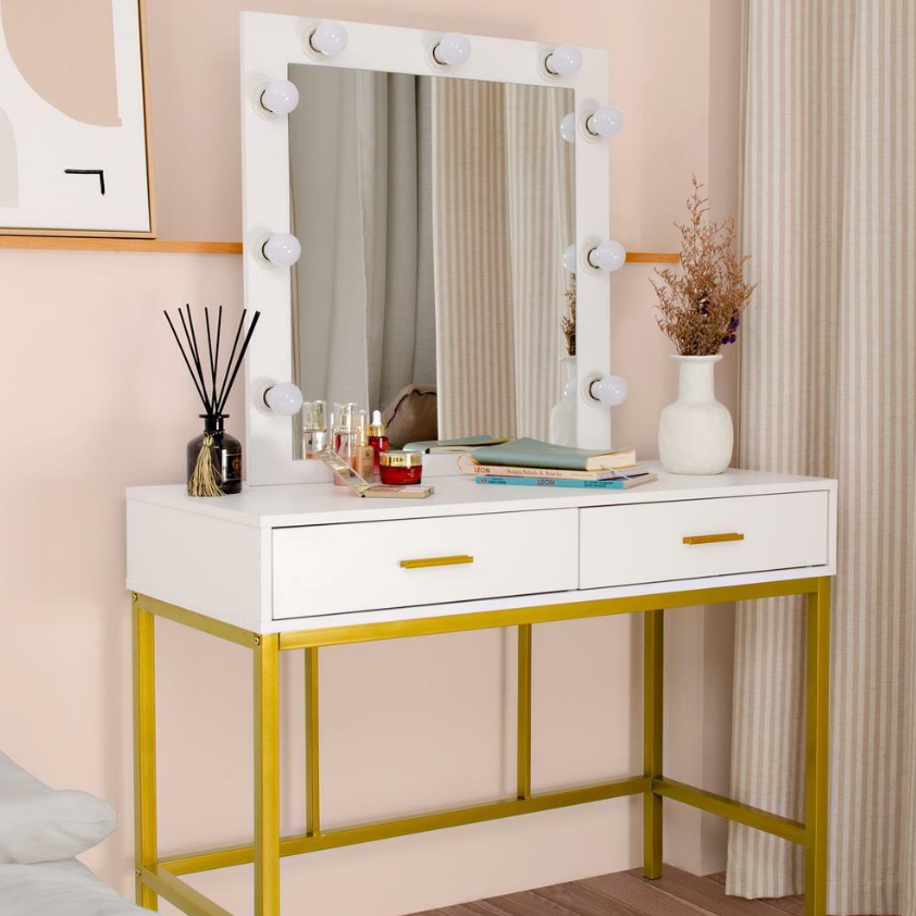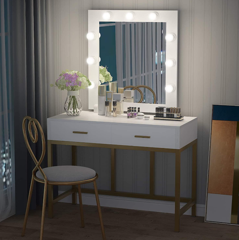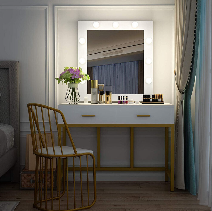 DURABLE AND AESTHETIC: Crafted from strong golden metal frame (0.98 inch) and E1-graded MDF wood, this makeup vanity with lights takes on both contemporary and classic silhouette in your home and serve you for years to come.