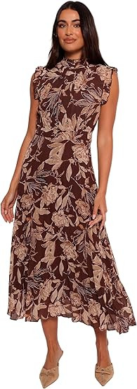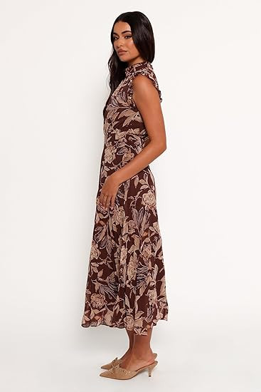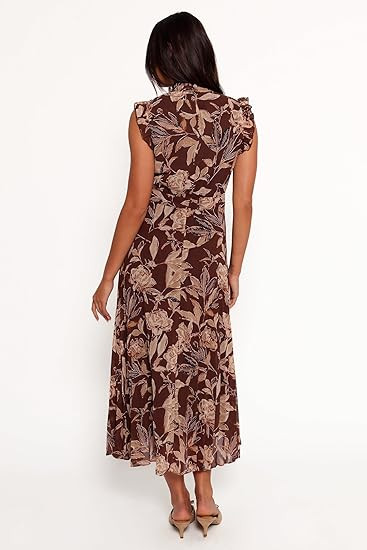 Petal & Pup Women's Delphine Long Dress - Brown Floral Pattern