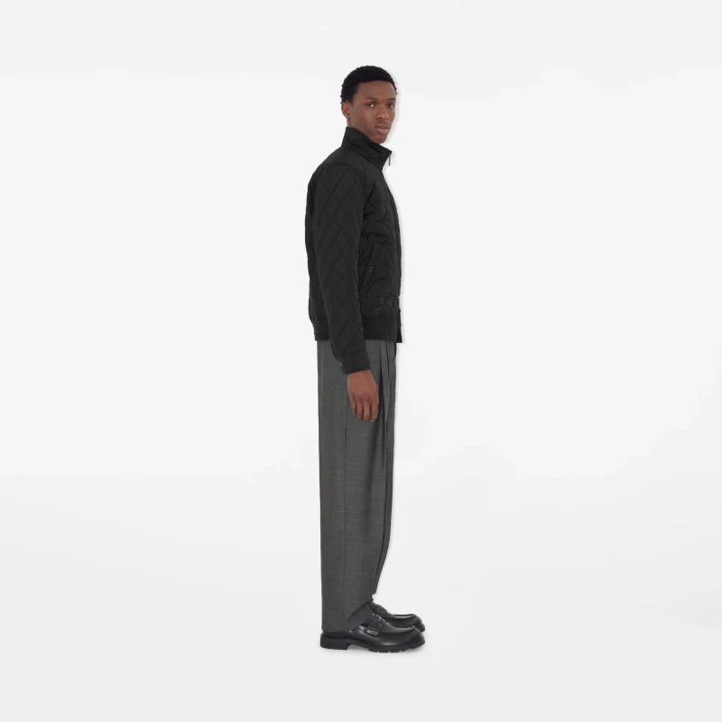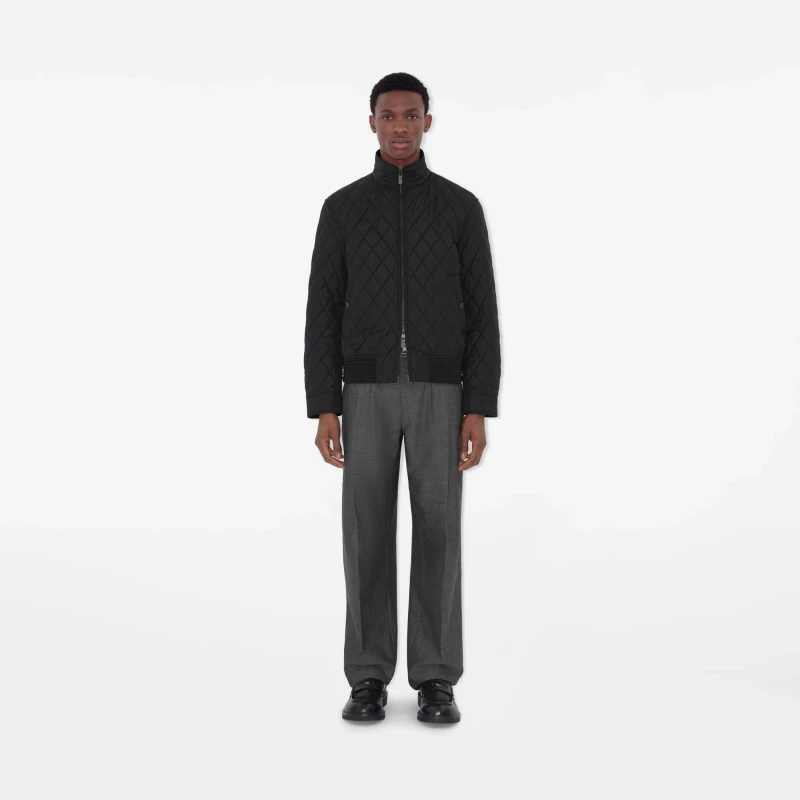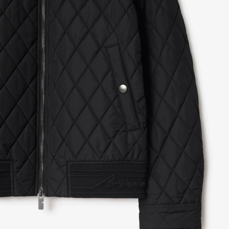 This quilted jacket is crafted from lightweight, protective nylon, featuring a corduroy collar and a Burberry check cotton twill lining. It offers a relaxed fit, with a jacquard knit logo detail at the hem and a B-shaped zipper pull.