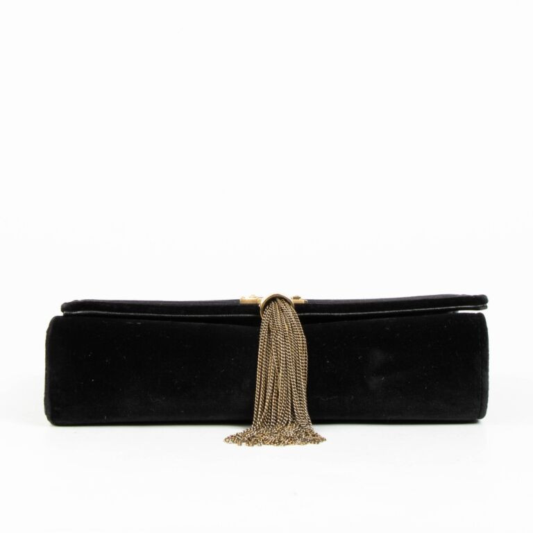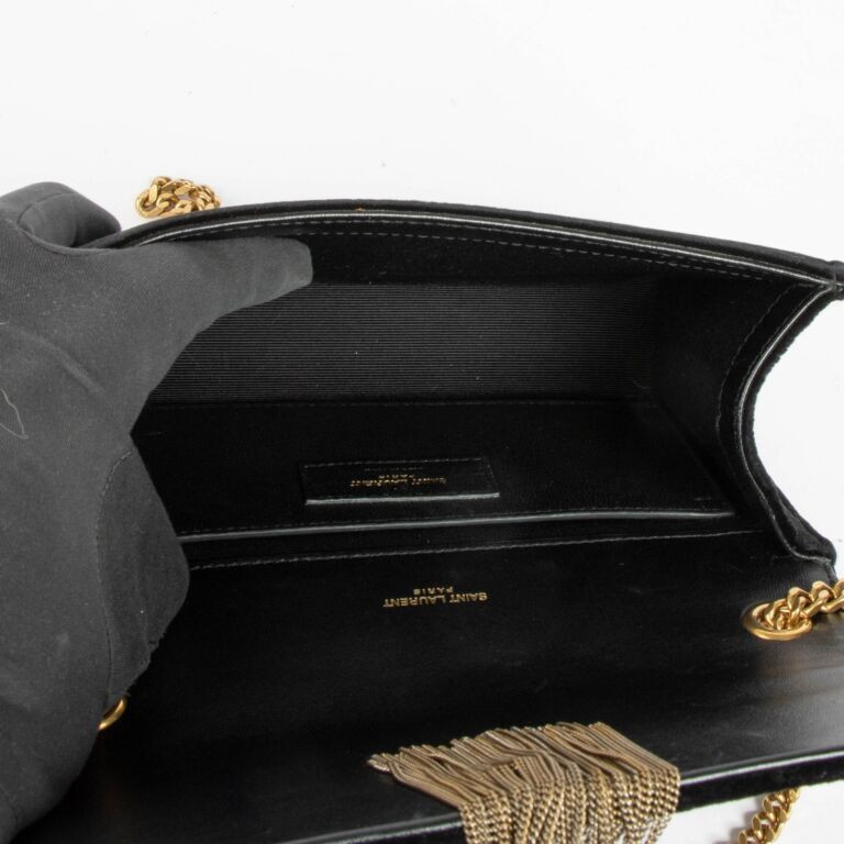 A timeless and chic piece from Saint Laurent, the Black Velvet Kate Tassel Bag is the perfect addition to any luxury wardrobe. Crafted from rich black velvet and finished with the iconic YSL logo hardware, it reflects the house’s refined elegance and sophisticated craftsmanship. The sleek silhouette is completed with the signature tassel detail, adding a subtle statement touch. Designed with a practical interior to hold your essentials, this bag is ideal for both day and evening wear and pairs effortlessly with countless outfits, from casual looks to more formal occasions.