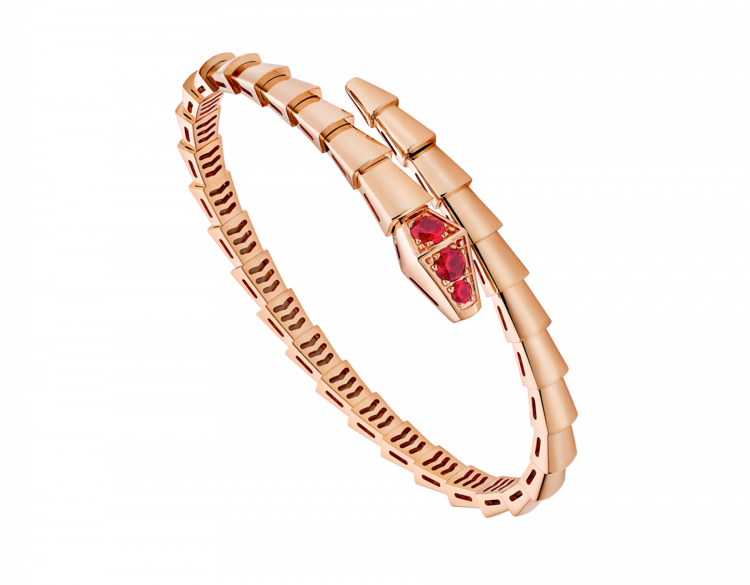 Serpenti Viper bracelet in 18K rose gold with rubies.