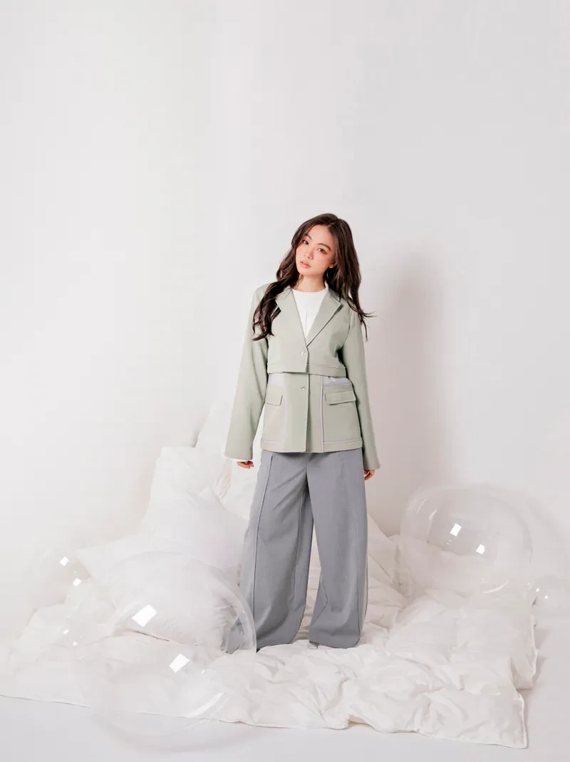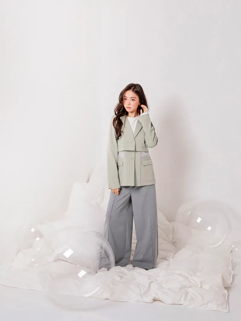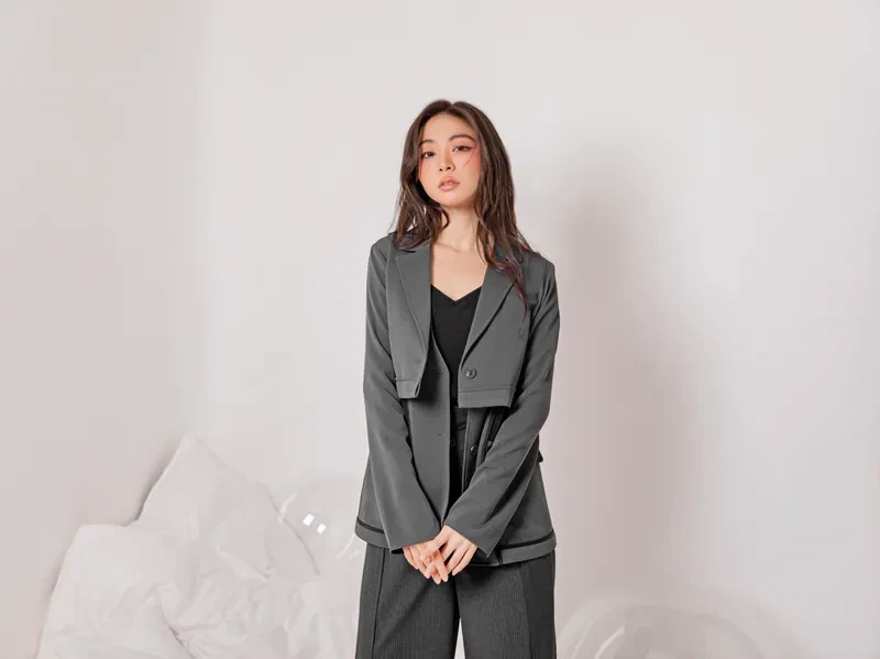 Short long-sleeved suit jacket with Cogan yarn vest-26SDJ045C